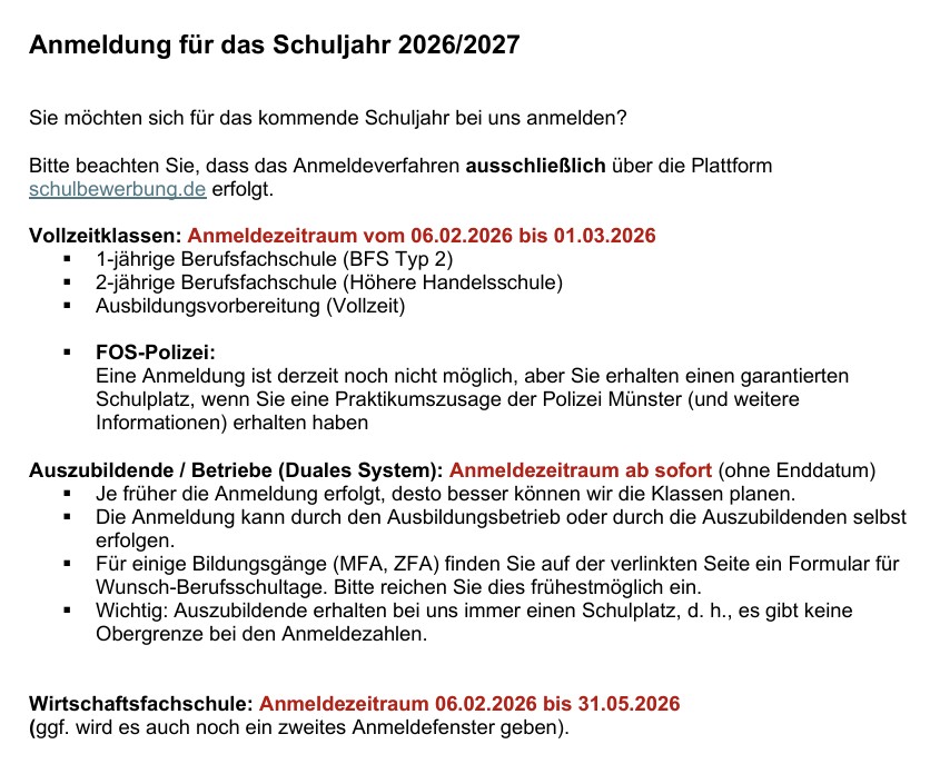 Informationen zur Anmeldung für das Schuljahr 2026/2027:...